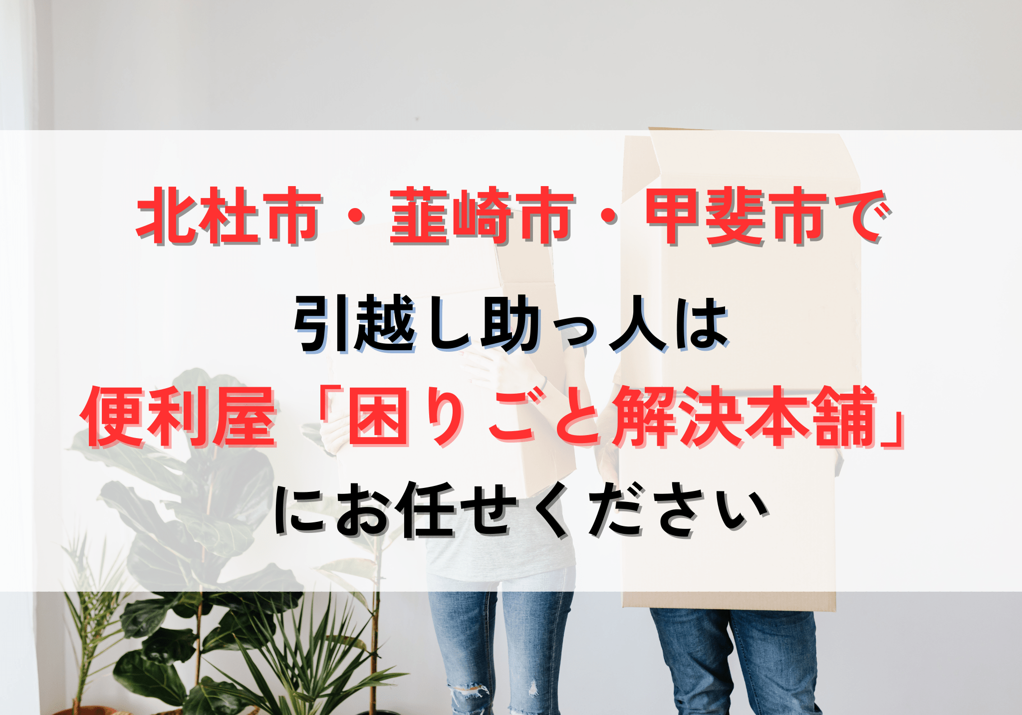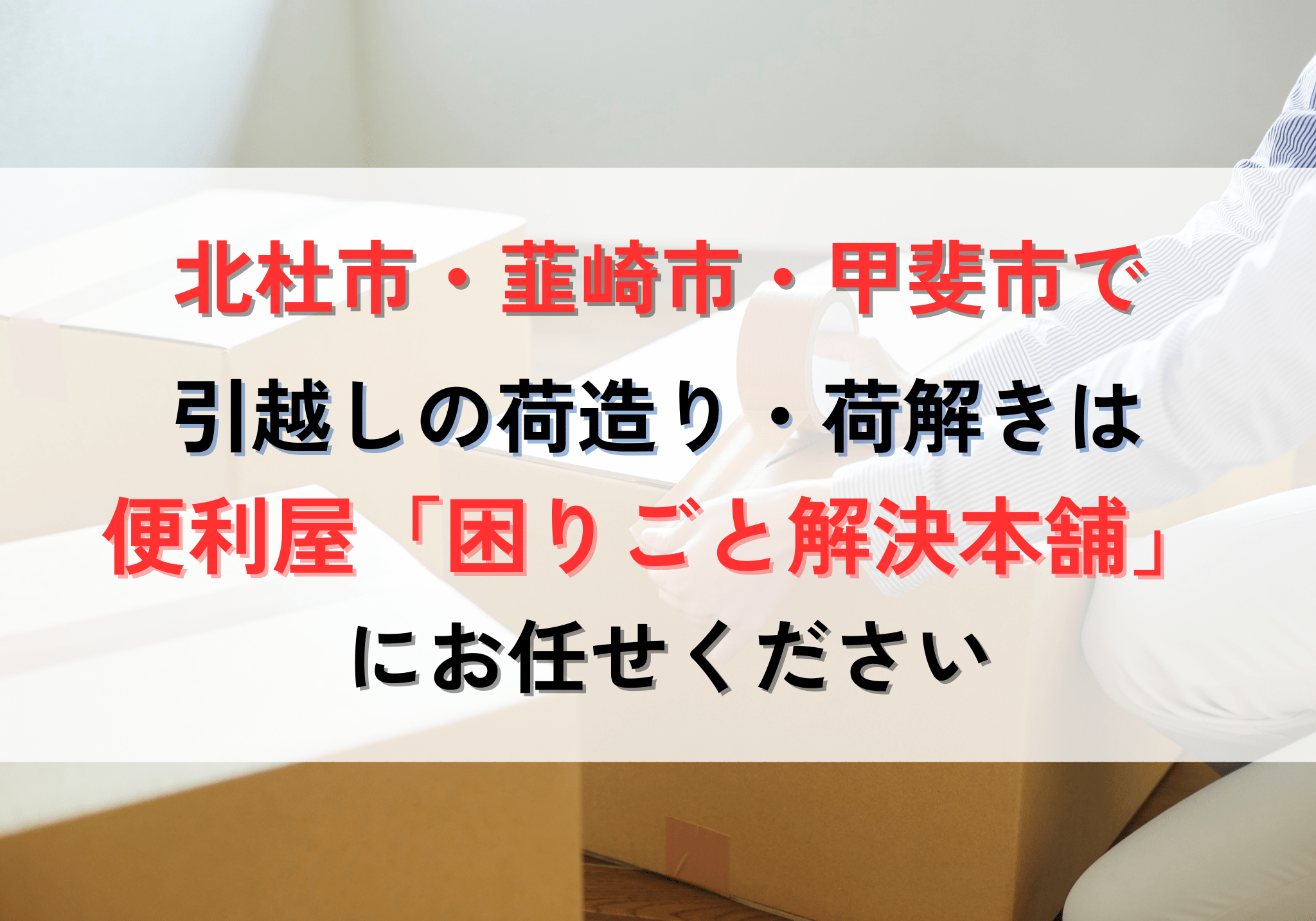 北杜市で引越しの荷造り・荷解きにお困りの方は、便利屋「困りごと解決本舗」におまかせください。作業費用は4,400円から対応しています。お見積もりは無料ですので、お気軽にご相談ください。