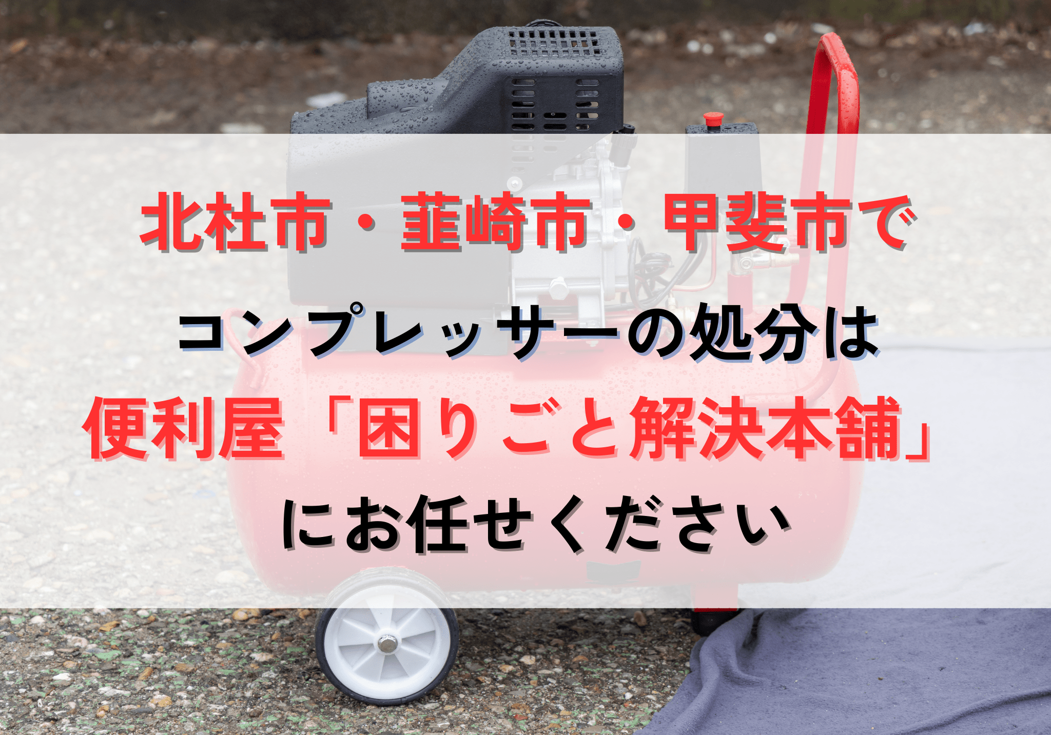 北杜市でコンプレッサーの処分にお困りの方は、便利屋「困りごと解決本舗」におまかせください。処分費用は3,300円から対応可能です。