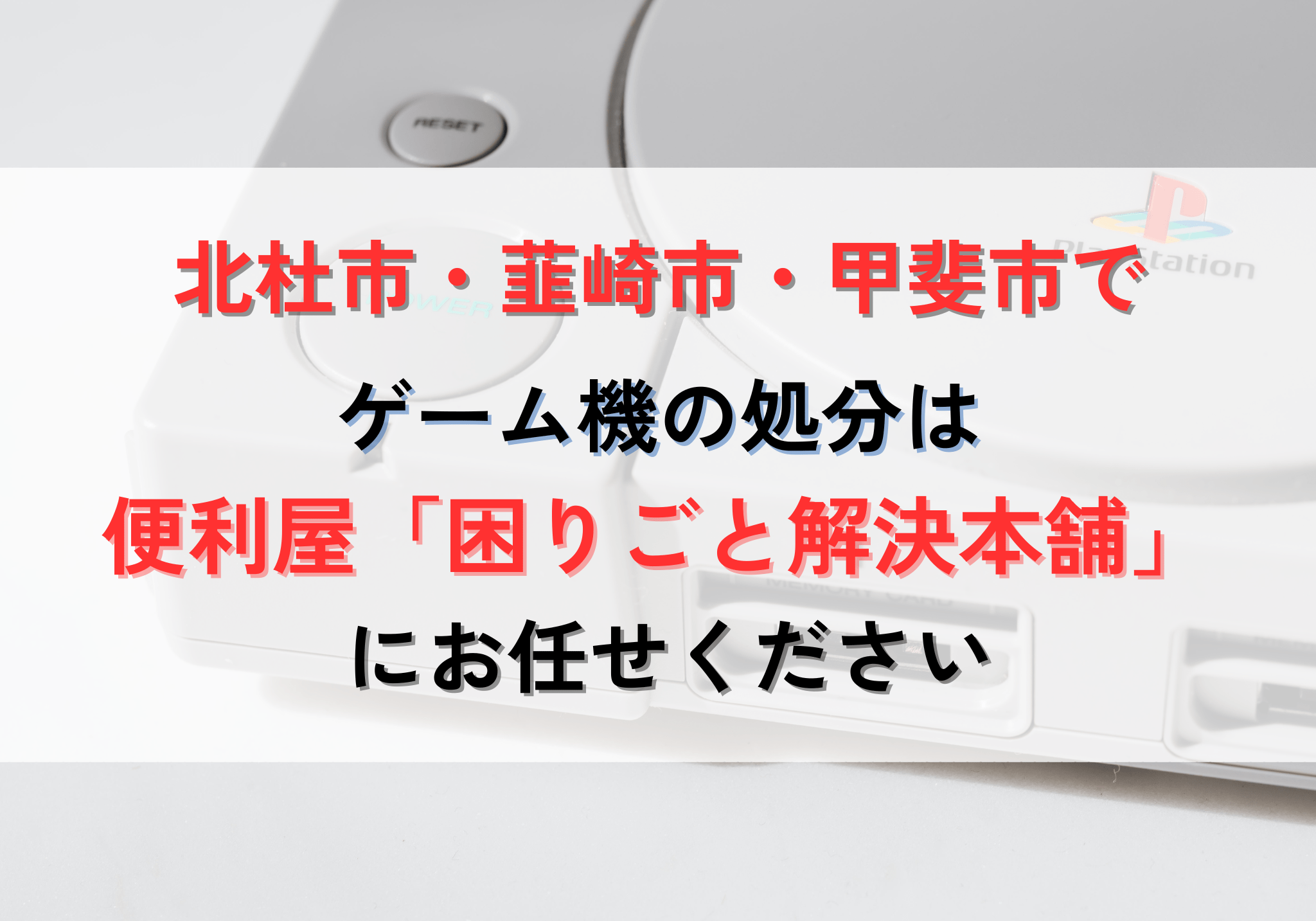 北杜市でゲーム機の処分にお困りの方は、便利屋「困りごと解決本舗」におまかせください。処分費用は1,100円から対応いたします。