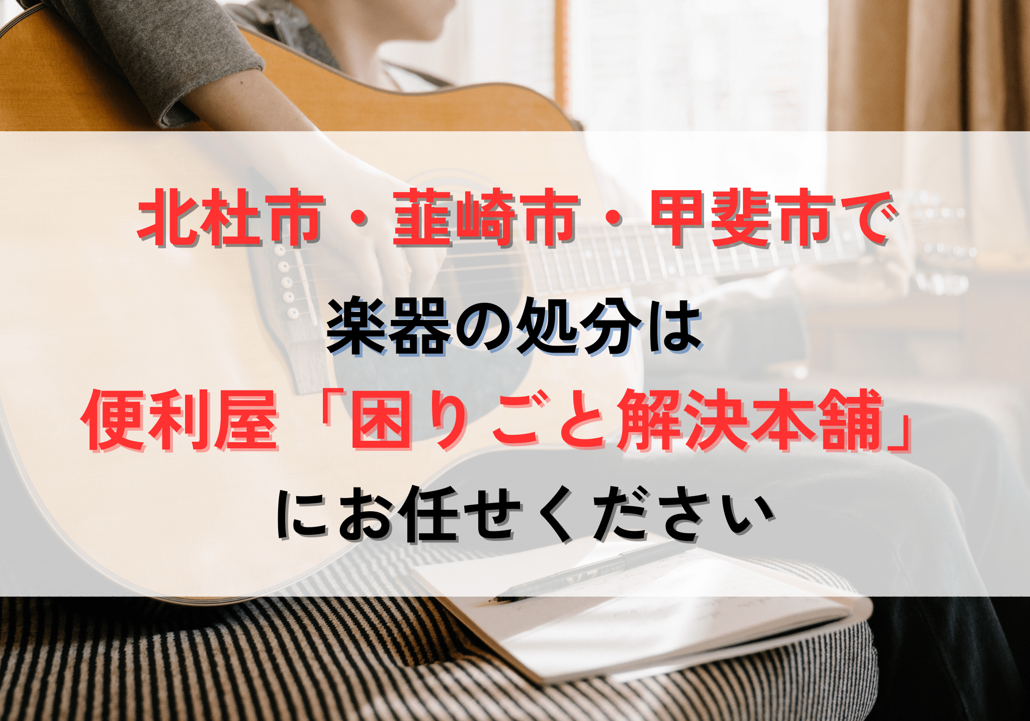 北杜市で楽器の処分にお困りの方は、便利屋「困りごと解決本舗」におまかせください。処分費用は3,300円から対応いたします。お見積もりは無料ですので、お気軽に相談ください。